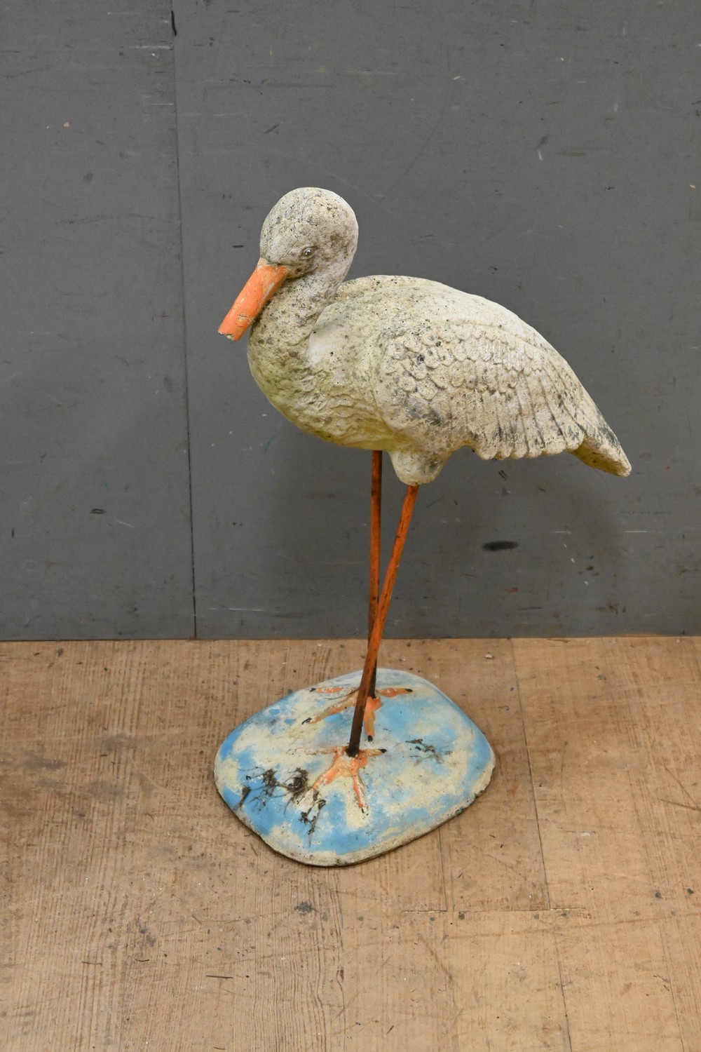 A CONCRETE GARDEN STORK (A/F) (72H CM) (PLEASE NOTE THIS HEAVY ITEM MUST BE REMOVED BY CARRIERS AT THE CUSTOMER'S EXPENSE. LEONARD JOEL STAFF CANNOT ASSIST CARRYING THIS ITEM) (X-LARGE ITEM)