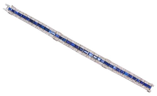 The articulated strap, composed of a row of thirty-seven baguette-cut sapphires together weighing approximately 15.00 carats centred between rows of old European-cut diamonds together weighing approximately 1.50 carats, length 190mm.