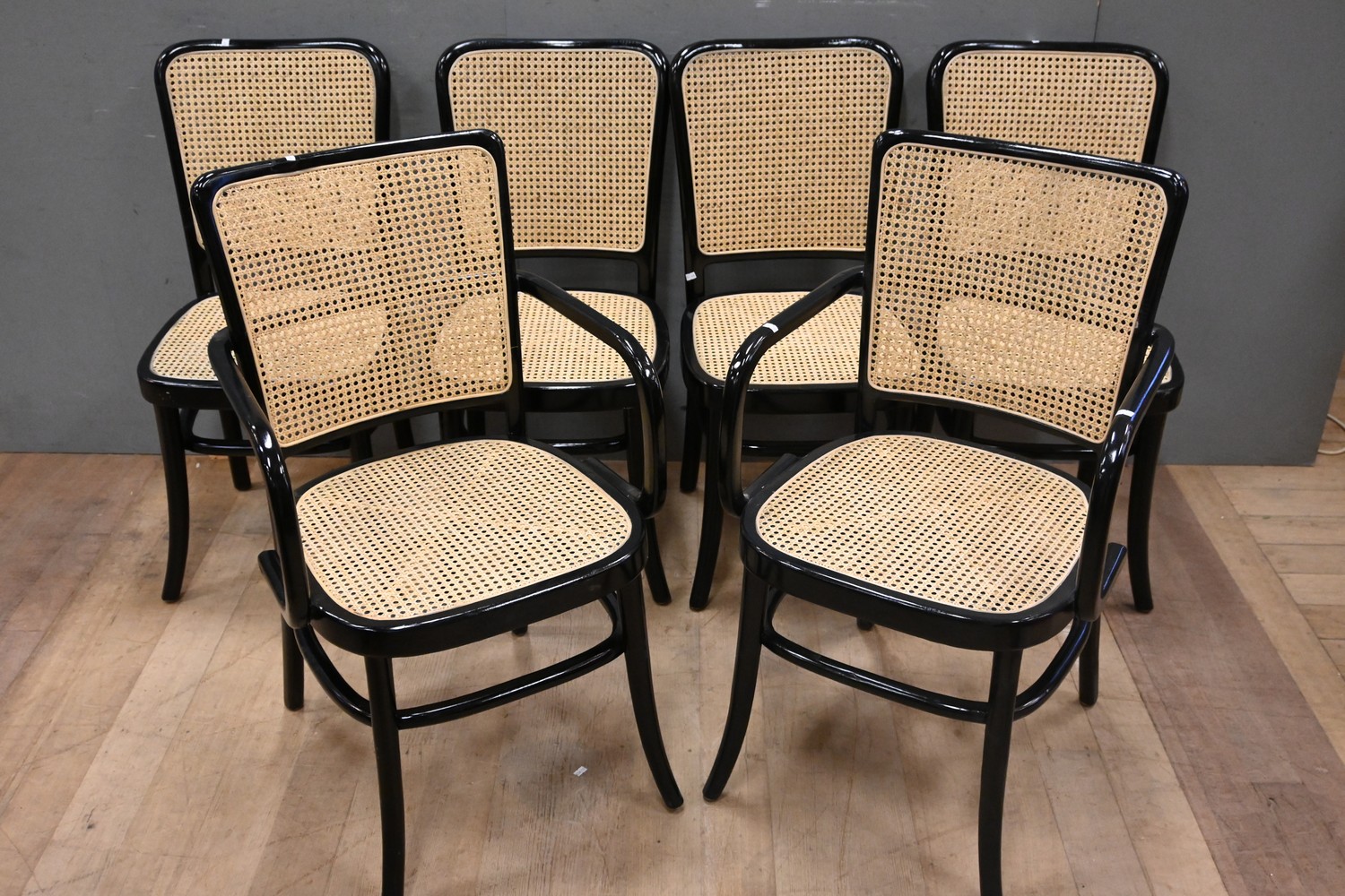 SIX TEAK AND RATTAN DINING CHAIRS ( 92H X 55W X 55D CM) (LEONARD JOEL DELIVERY SIZE: LARGE)