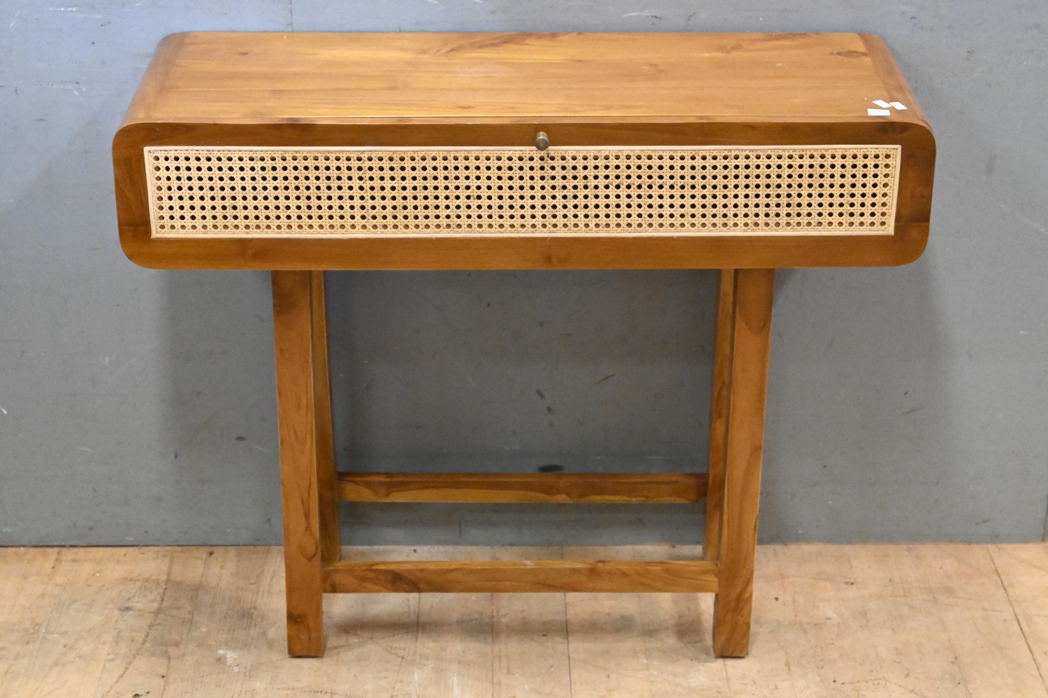 A TEAK AND RATTAN CONSOLE (79H x 99W x 35D CM) (LEONARD JOEL DELIVERY SIZE: LARGE)