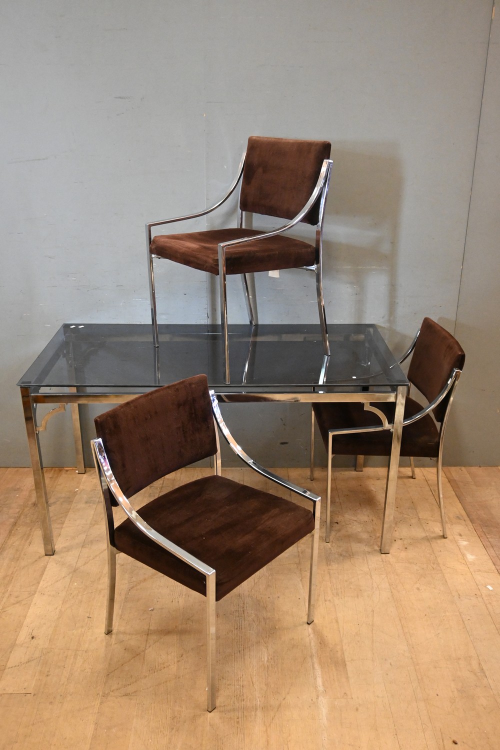 A RAMLER CHROME AND GLASS FOUR PIECE SETTING (73H x 138W x 70D CM) (LEONARD JOEL DELIVERY SIZE: X-LARGE)