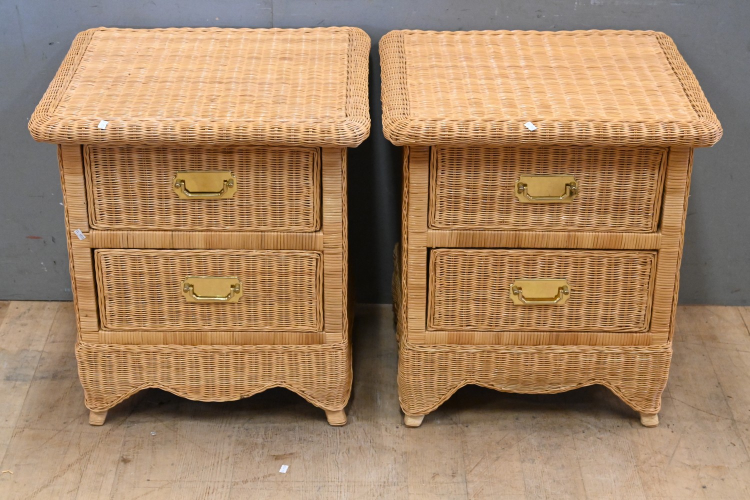 A PAIR OF WICKER TWO DRAWER BEDSIDES (65H x 59W x 50D CM) (LEONARD JOEL DELIVERY SIZE: LARGE)