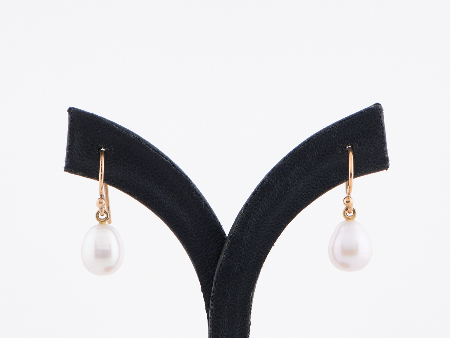 A PAIR OF CULTURED PEARL EARRINGS TO 9CT GOLD HOOK FITTINGS, THE PEARLS MEASURING 8-9MM