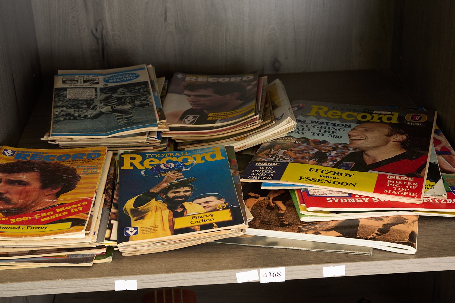A SHELF OF FOOTBALL RECORDS, MOST 1980S, LEONARD JOEL LOCAL DELIVERY SIZE: SMALL
