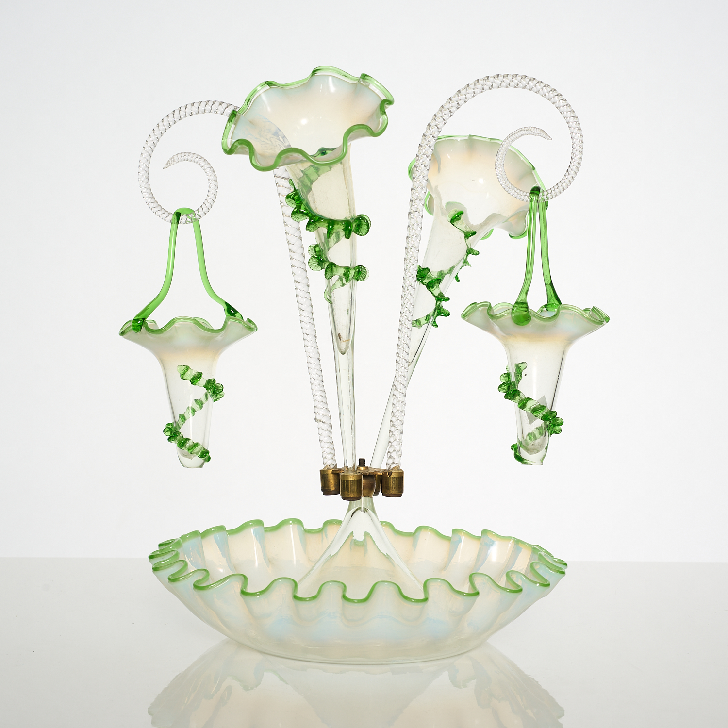 A GLASS EPERGNE, H. 43CM, LEONARD JOEL LOCAL DELIVERY SIZE: MEDIUM