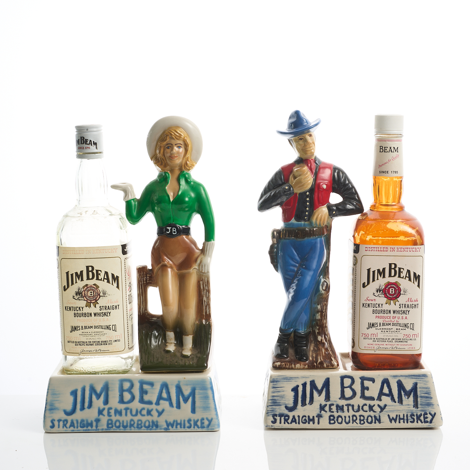 TWO JIM BEAM CERAMIC PROMOTIONAL FIGURES H.33CM, LEONARD JOEL LOCAL DELIVERY SIZE: MEDIUM