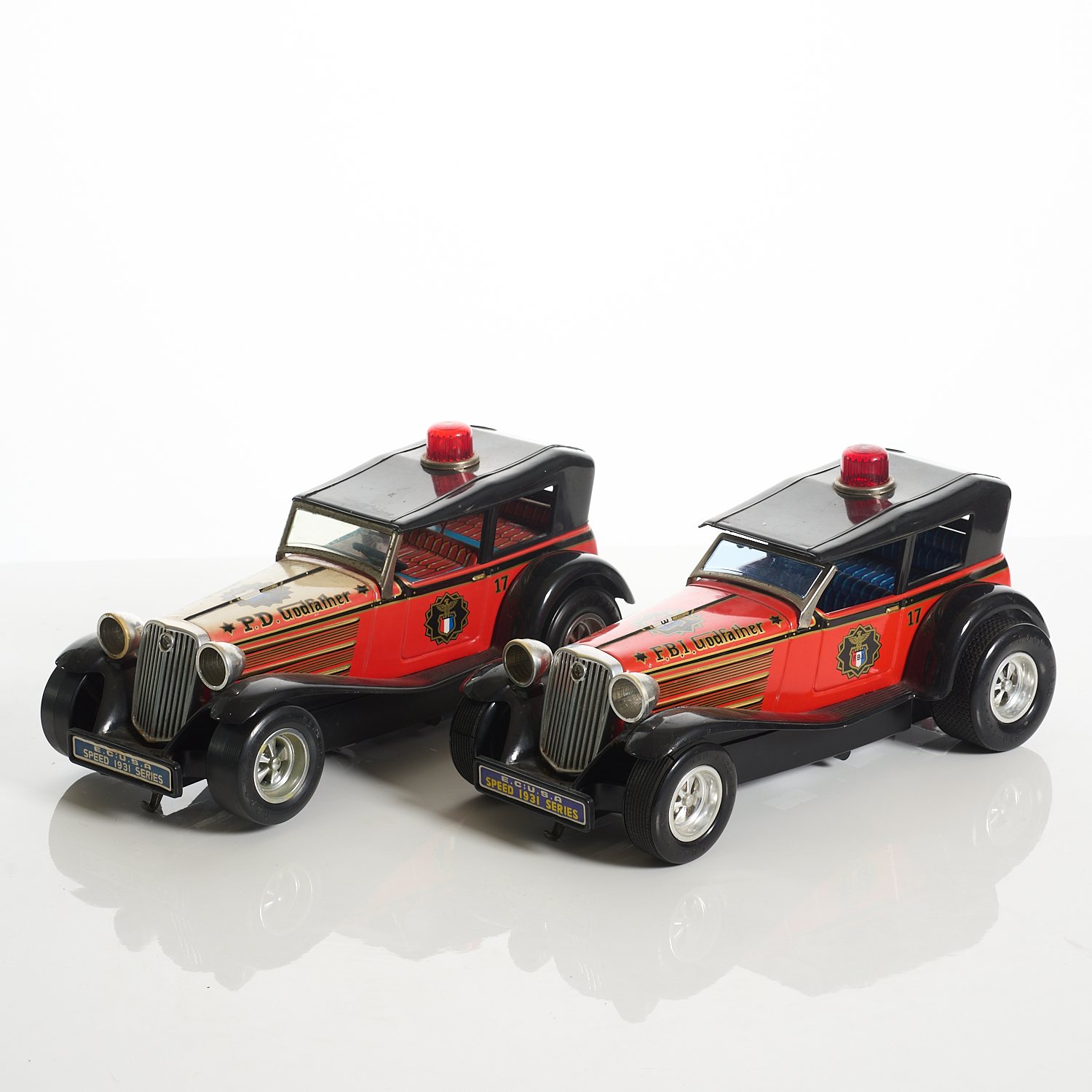 TWO TAIYO JAPANESE TIN TOY CARS W.25CM, LEONARD JOEL LOCAL DELIVERY SIZE: SMALL