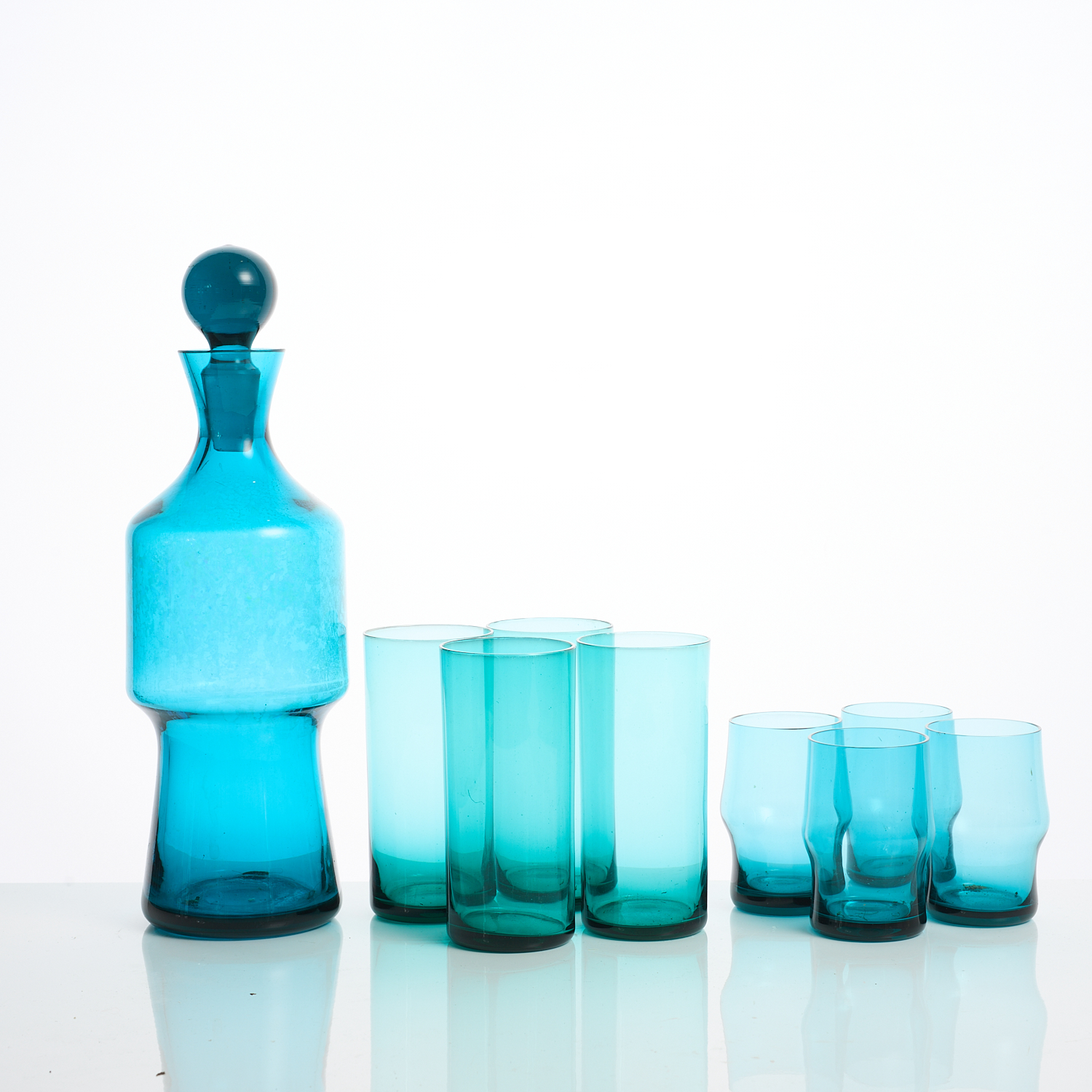 A RETRO BLUE GLASS DRINKS SET, LEONARD JOEL LOCAL DELIVERY SIZE: MEDIUM