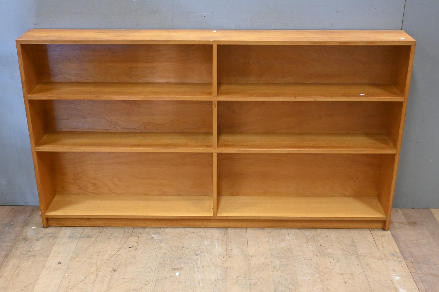 A LONG MID-CENTURY TEAK BOOKSHELF (100H x 180W x 21D CM) (PLEASE NOTE THIS HEAVY ITEM MUST BE REMOVED BY CARRIERS AT THE CUSTOMER'S EXPENSE. LEONARD JOEL STAFF CANNOT ASSIST CARRYING THIS ITEM) (X-LARGE ITEM)