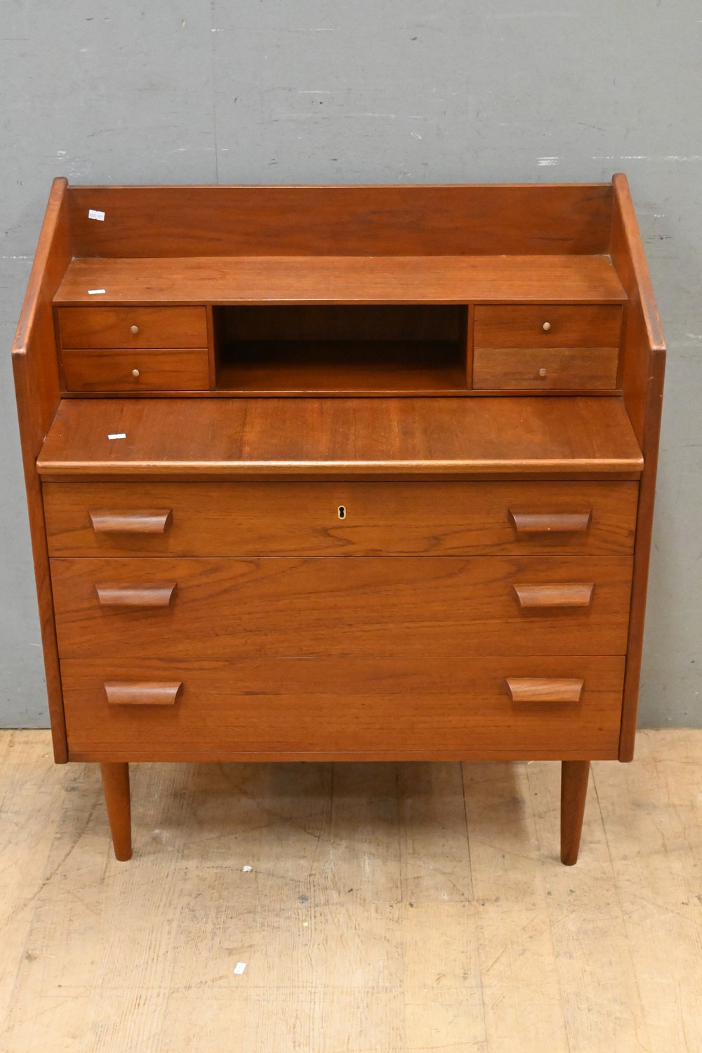 A MID-CENTURY TEAK THREE DRAWER BUREAU ( A/F) ( 97H X 82W X 43D CM) (LEONARD JOEL DELIVERY SIZE: LARGE)