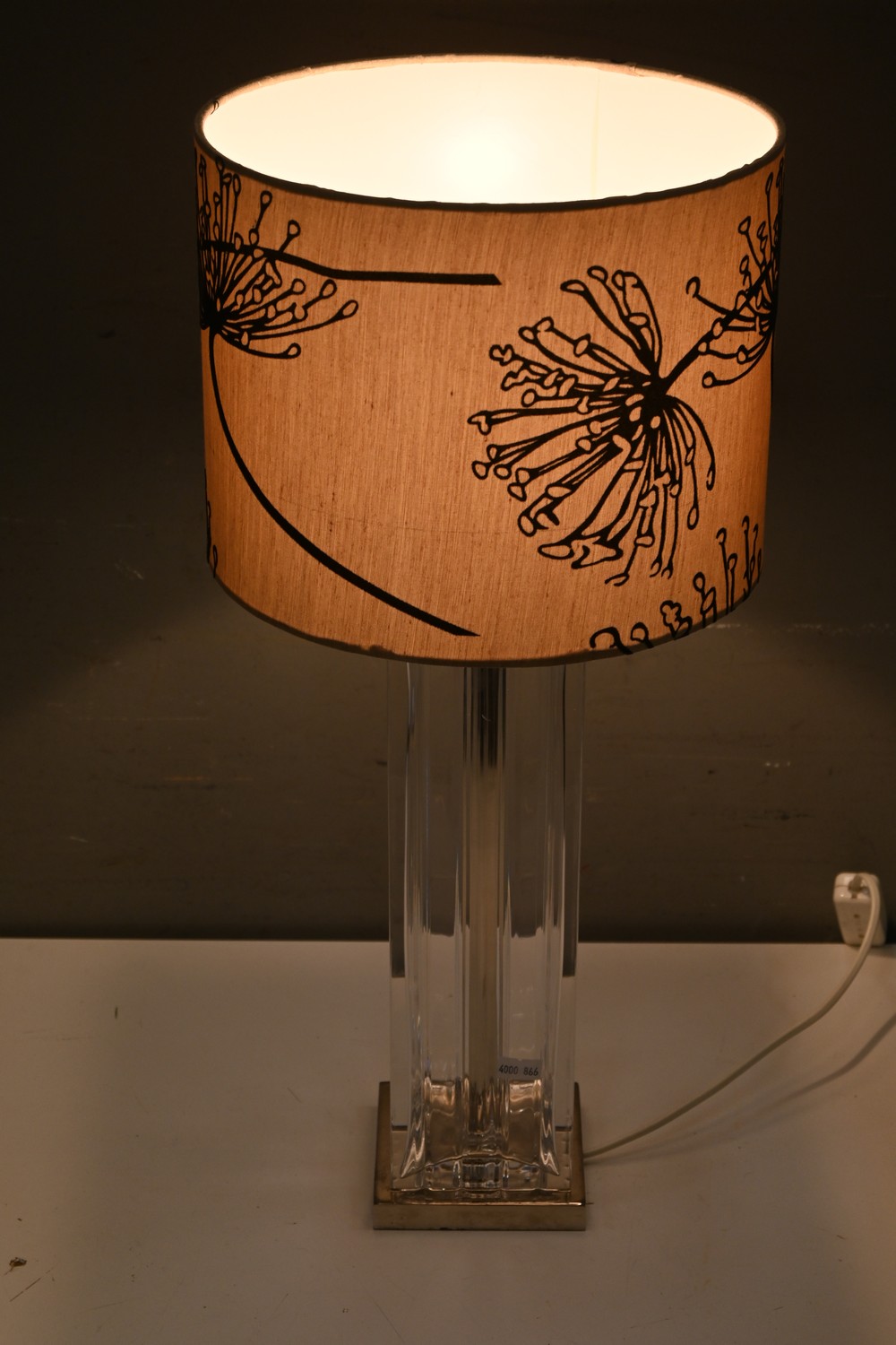 A VINTAGE HEAVY GLASS AND CHROME BASED LAMP (55H CM) (LEONARD JOEL DELIVERY SIZE: LARGE)