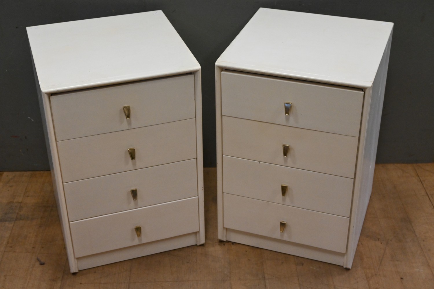 A PAIR OF FOUR DRAWER BEDSIDE CHESTS BY ALROB FURNITURE ( 67H X 45W X 47D CM) (LEONARD JOEL DELIVERY SIZE: LARGE)