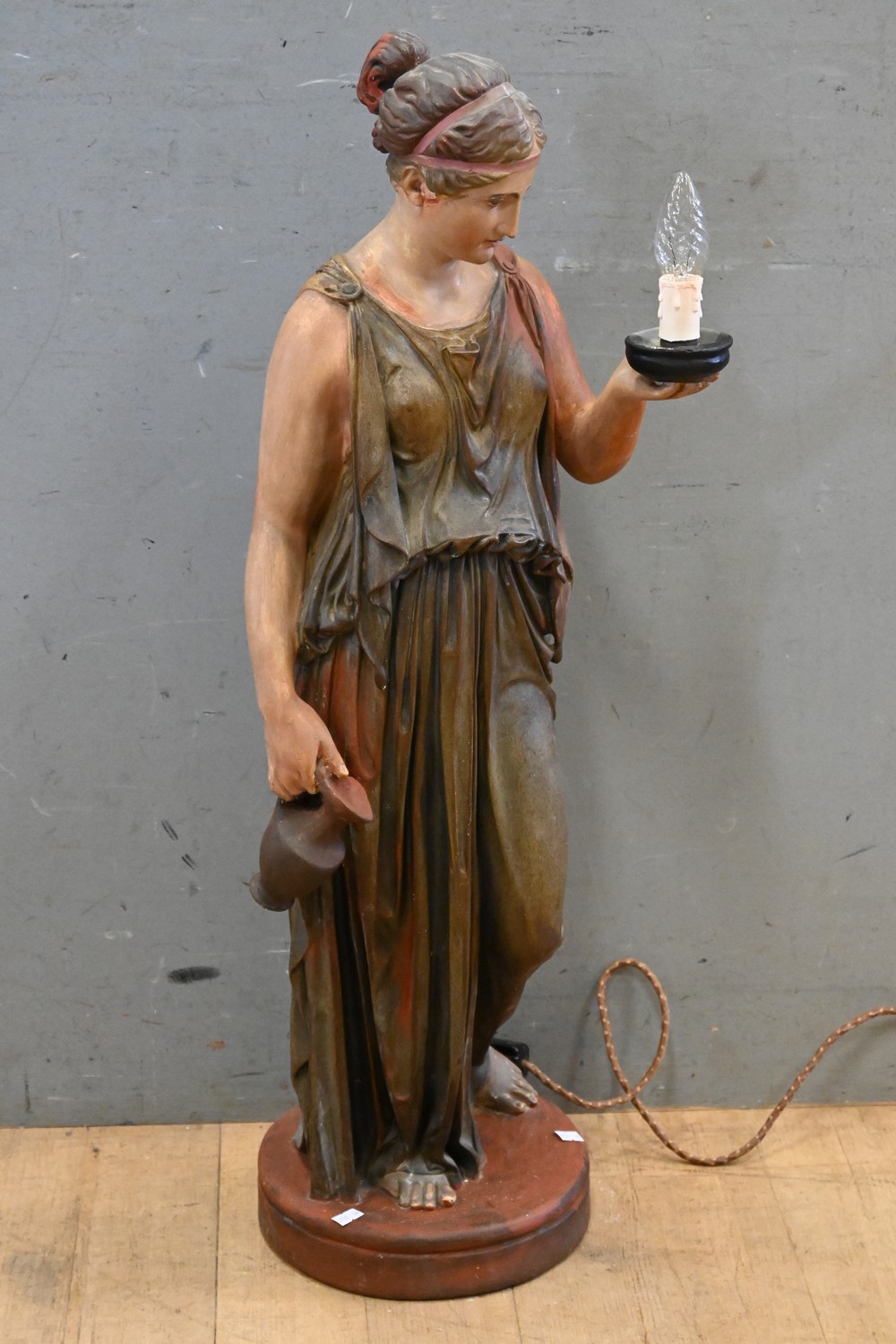 A 1930S FIGURAL PLASTER LAMP OF A WOMAN (88H CM) (LEONARD JOEL DELIVERY SIZE: LARGE)