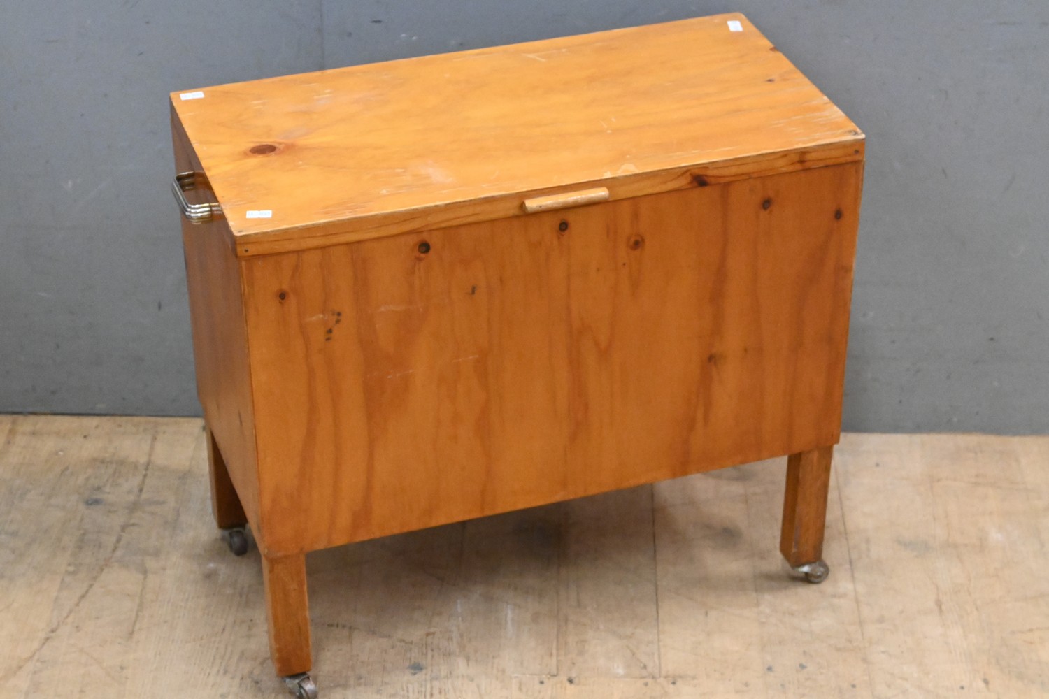 A TIMBER FLIP TOP TRUNK ( 54H X 63W X 32D CM) (LEONARD JOEL DELIVERY SIZE: MEDIUM)