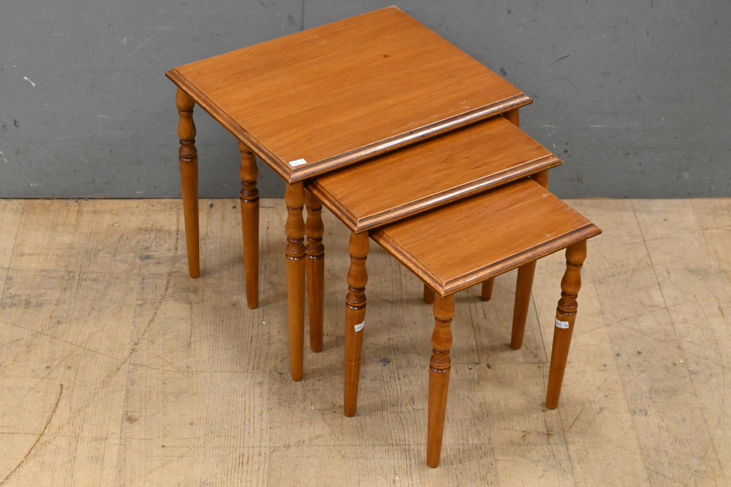 A NEST OF THREE TIMBER SIDE TABLES (A/F) (39H x 42W x 35D CM) (LEONARD JOEL DELIVERY SIZE: MEDIUM)