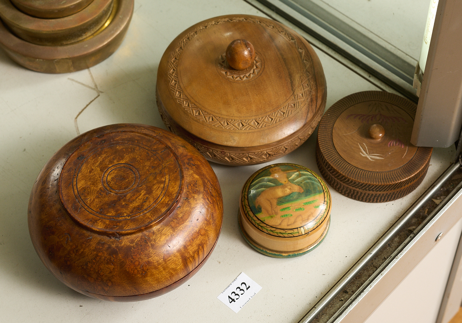 FOUR HAND-TURNED WOODEN LIDDED BOXES, LEONARD JOEL LOCAL DELIVERY SIZE: SMALL