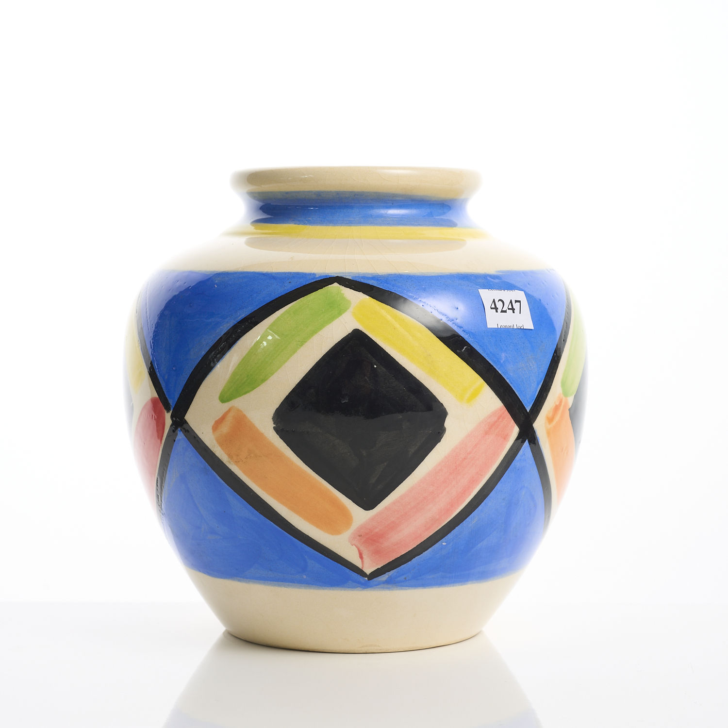 AN ART DECO STYLE POTTERY VASE BY LINDA JACKSON, H. 22CM, LEONARD JOEL LOCAL DELIVERY SIZE: SMALL