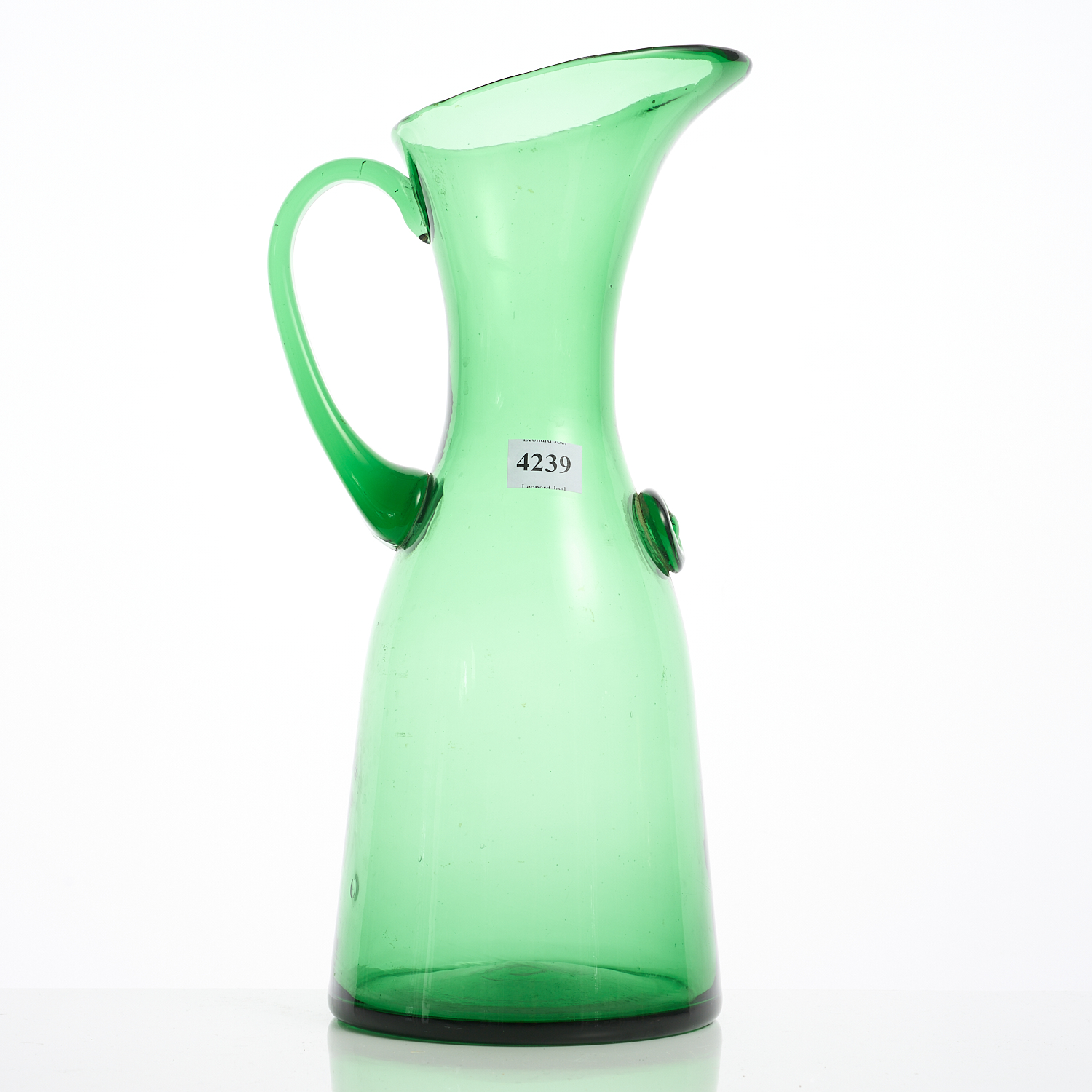 A LARGE HAND-BLOWN ITALIAN EMPOLI VERDE WATER JUG, H. 32CM, LEONARD JOEL LOCAL DELIVERY SIZE: MEDIUM