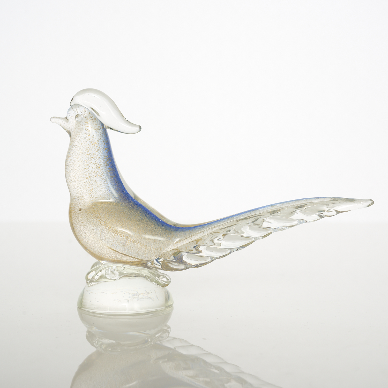 AN ITALIAN MURANO GLASS PHEASANT BY ALFREDO BARBINI, H. 10CM, LEONARD JOEL LOCAL DELIVERY SIZE: SMALL