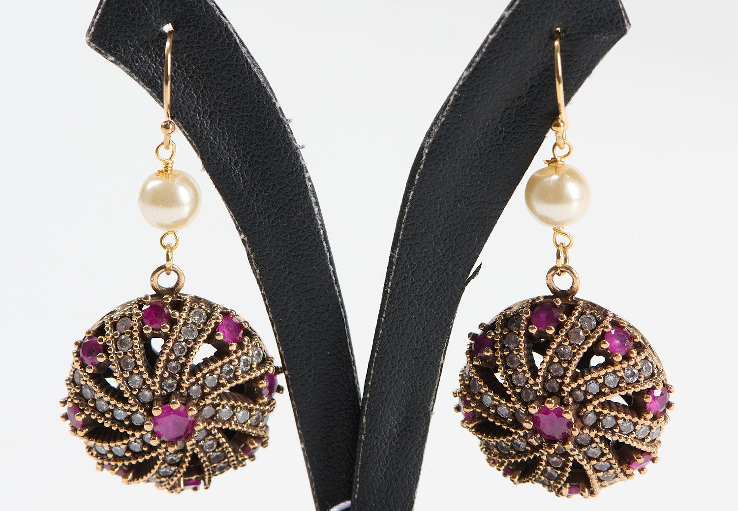 A PAIR OF PEARL AND PASTE SET EARRINGS IN SILVER GILT, TO SHEPHERDS HOOK FITTINGS