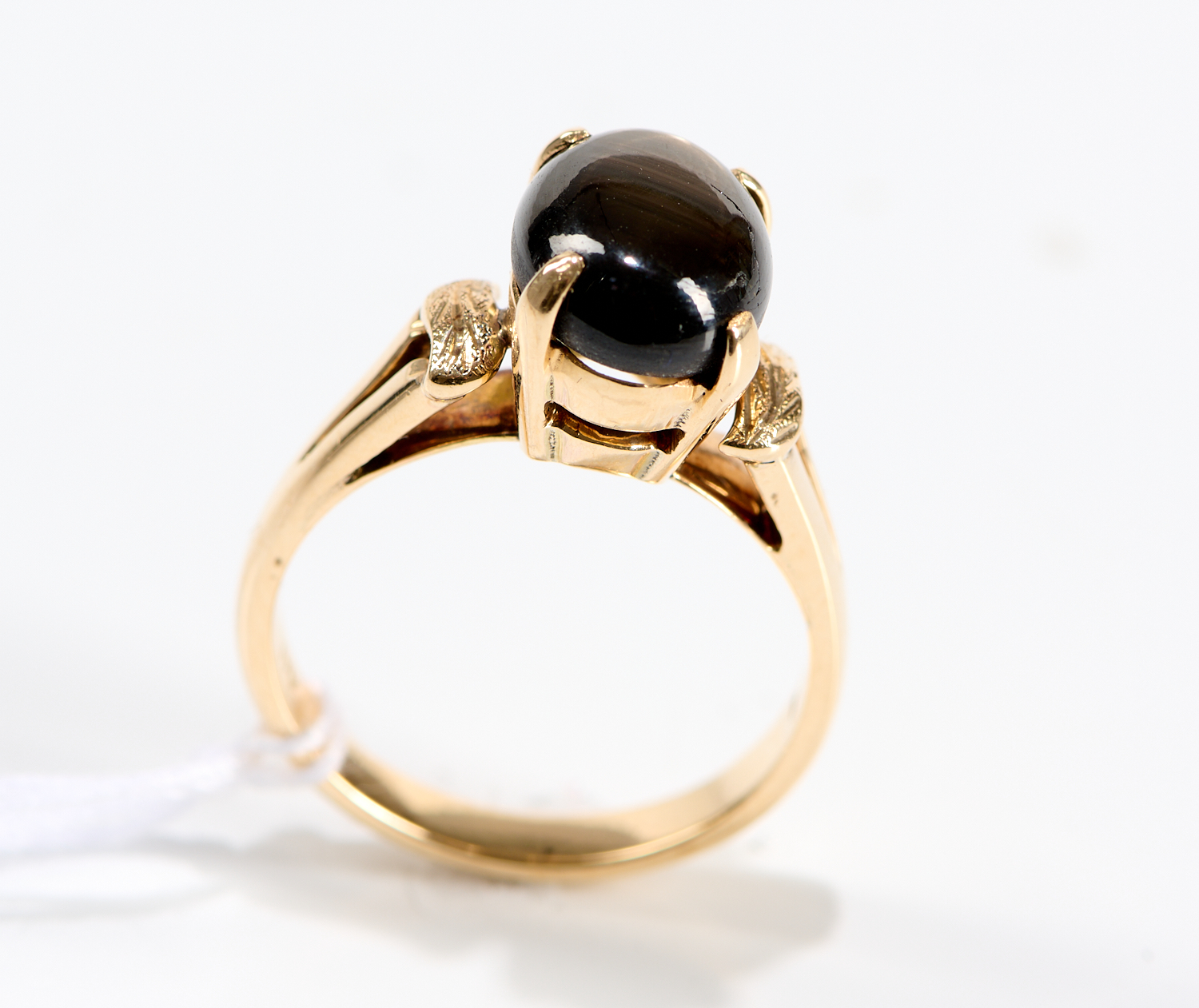 A STAR SAPPHIRE SET RING IN 9CT GOLD, SIZE N, 5.00GMS, WITH VALUATION