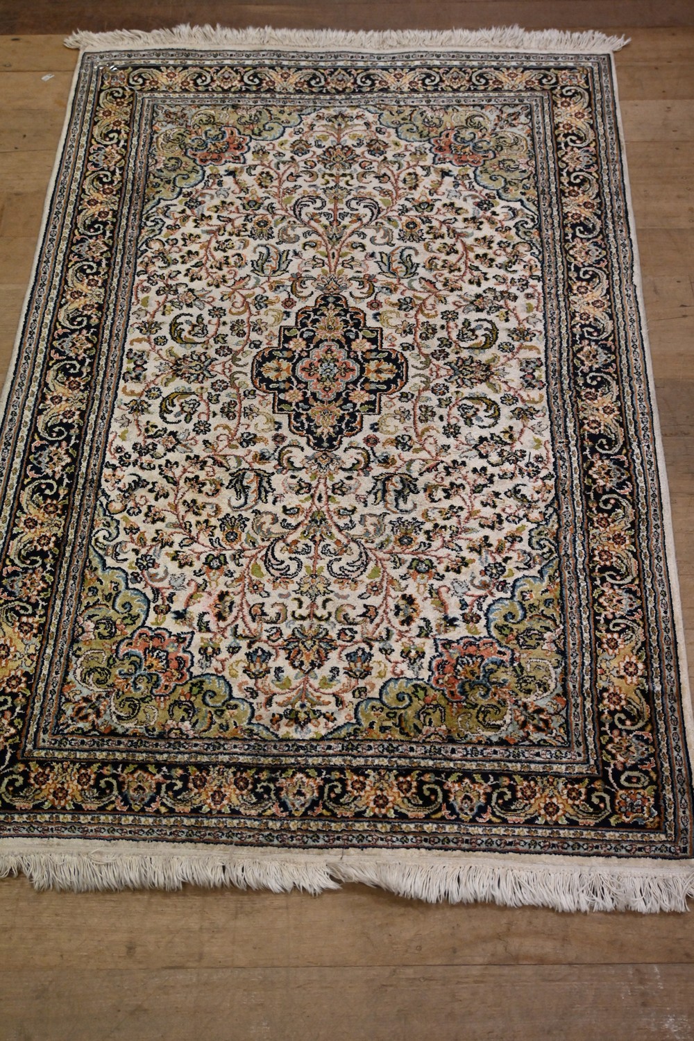 A KASHANI BLUE PATTERNED SILK CARPET (154 X 94CM) (LEONARD JOEL DELIVERY SIZE: LARGE)
