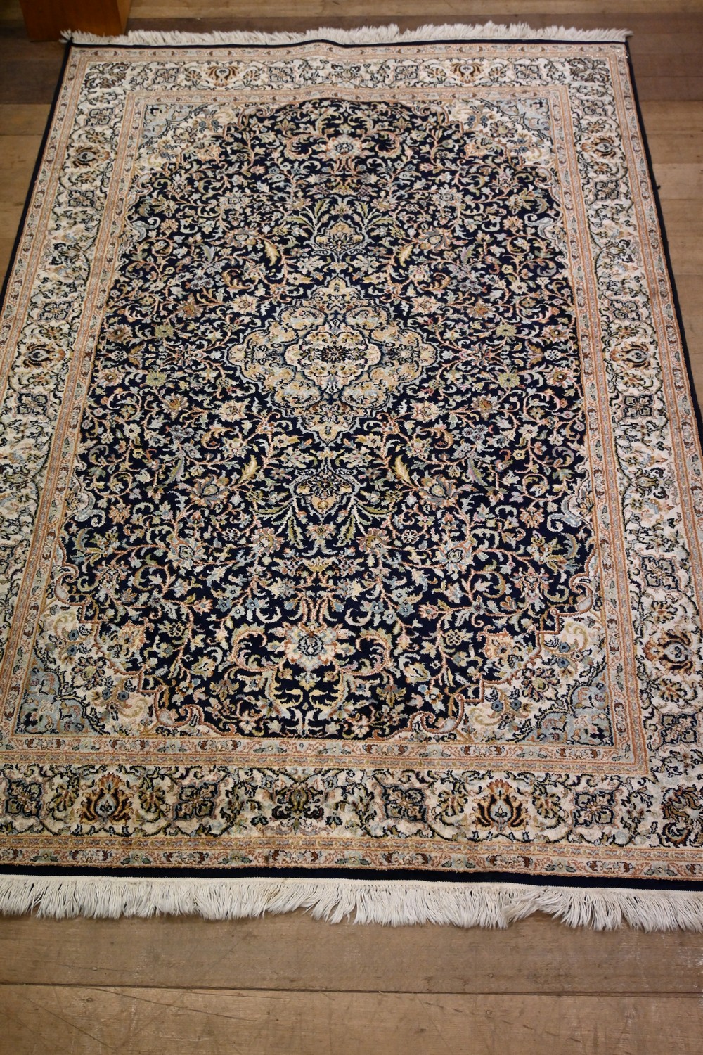 A KASHANI BLUE PATTERNED SILK CARPET (190 X 124CM) (LEONARD JOEL DELIVERY SIZE: LARGE)