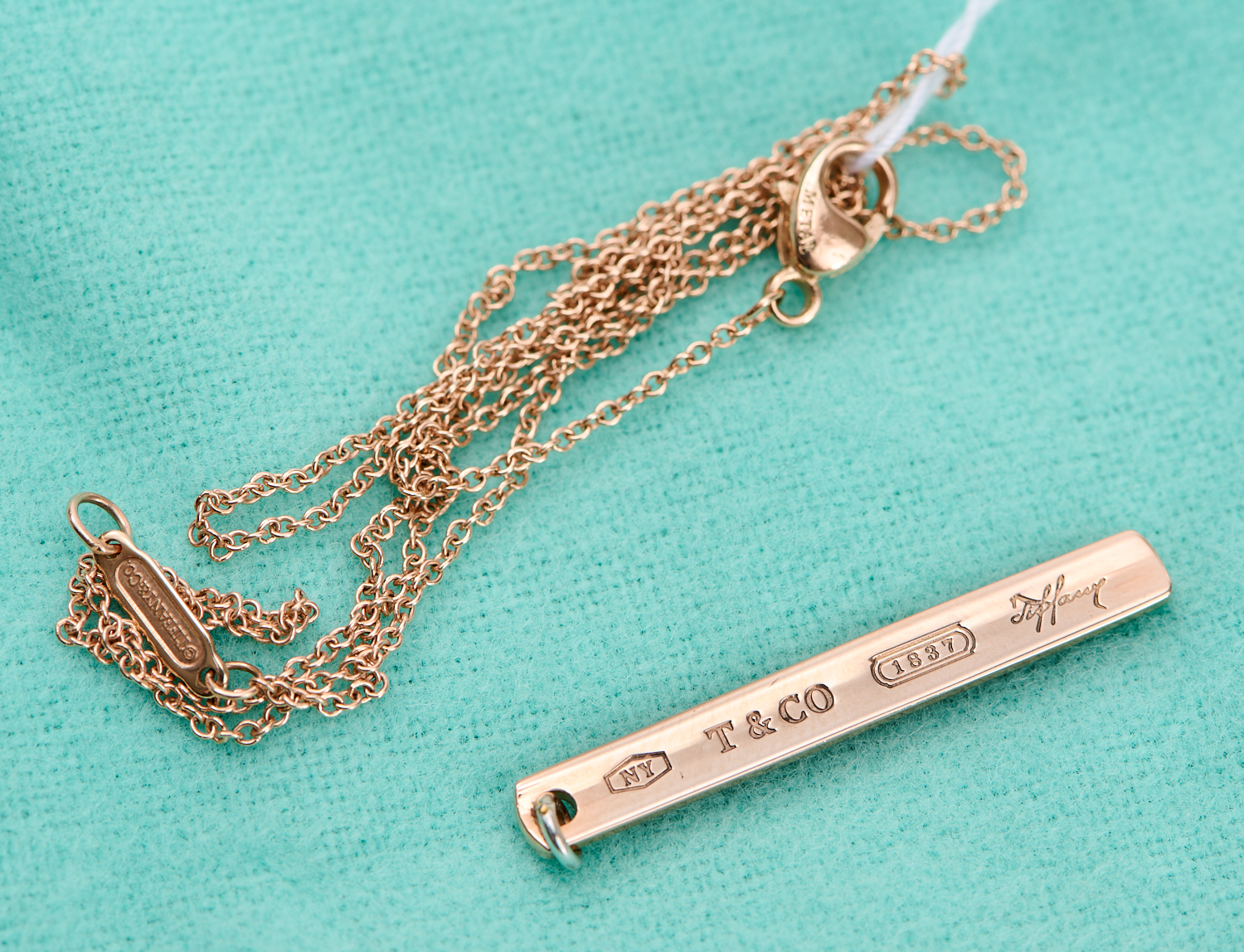 A LIMITED EDITION 1837 BAR PENDANT AND CHAIN IN RUBEDO, SIGNED TIFFANY & CO.