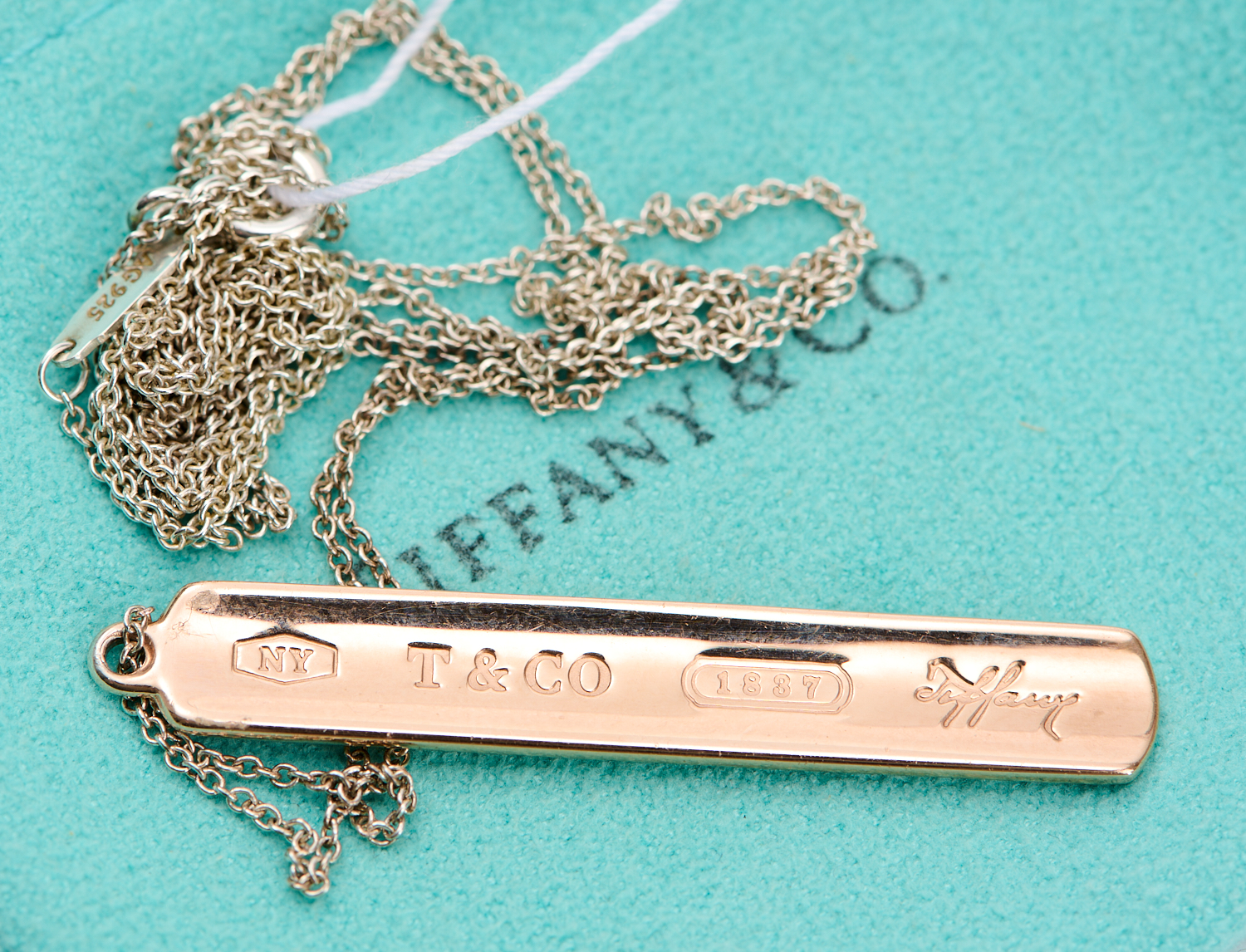 A LIMITED EDITION 1837 BAR PENDANT IN RUBEDO, ALONG WITH A CHAIN IN STERLING SILVER, SIGNED TIFFANY & CO.