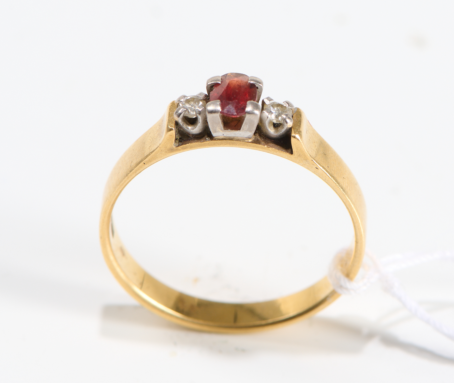 AN 18CT GOLD AND RUBY RING, SIZE U-V, 4.42GMS