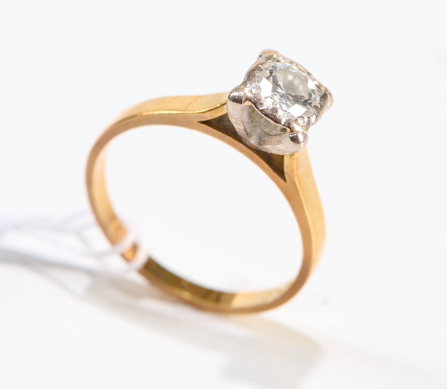 A DIAMOND RING IN 18CT GOLD, RING SIZE N/O, 3.3GMS