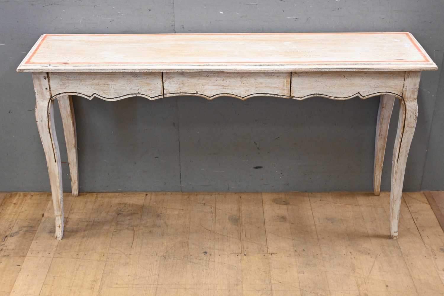 A FRENCH PROVINCIAL STYLE WHITE WASH SINGLE DRAWER CONSOLE (77H x 150W x 38D CM) (LEONARD JOEL DELIVERY SIZE: LARGE)