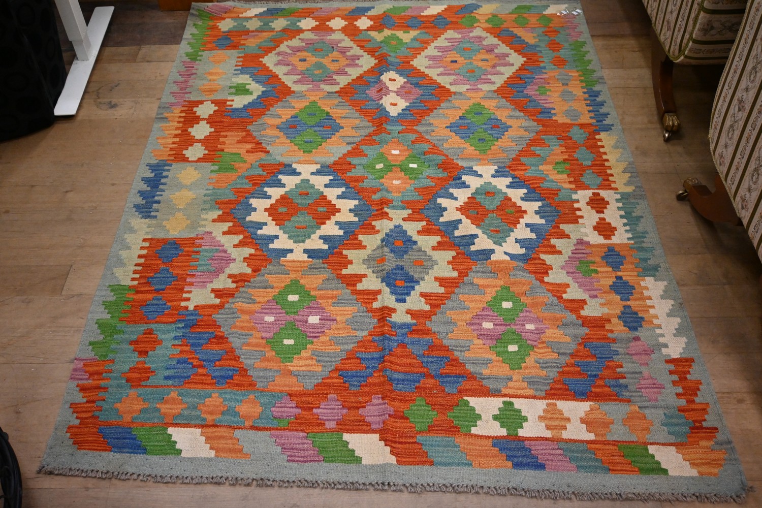 AN AFGHAN KAZAK KILIM, ALL HAND WOVEN, 100% PURE WOOL VEGETABLE DYES, GEOMETRIC AND CAUCASIAN DESIGN, REVERSABLE, BRAND NEW (206 x 150 CM) (LEONARD JOEL DELIVERY SIZE: LARGE)
