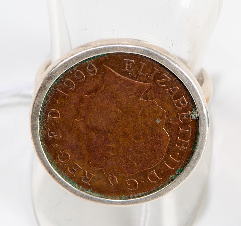 A 1999 COIN RING IN STERLING SILVER, SIZE O