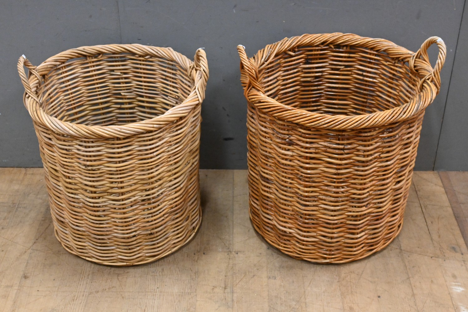 TWO CANE WOVEN BASKETS (66H x 60D CM) (LEONARD JOEL DELIVERY SIZE: LARGE)
