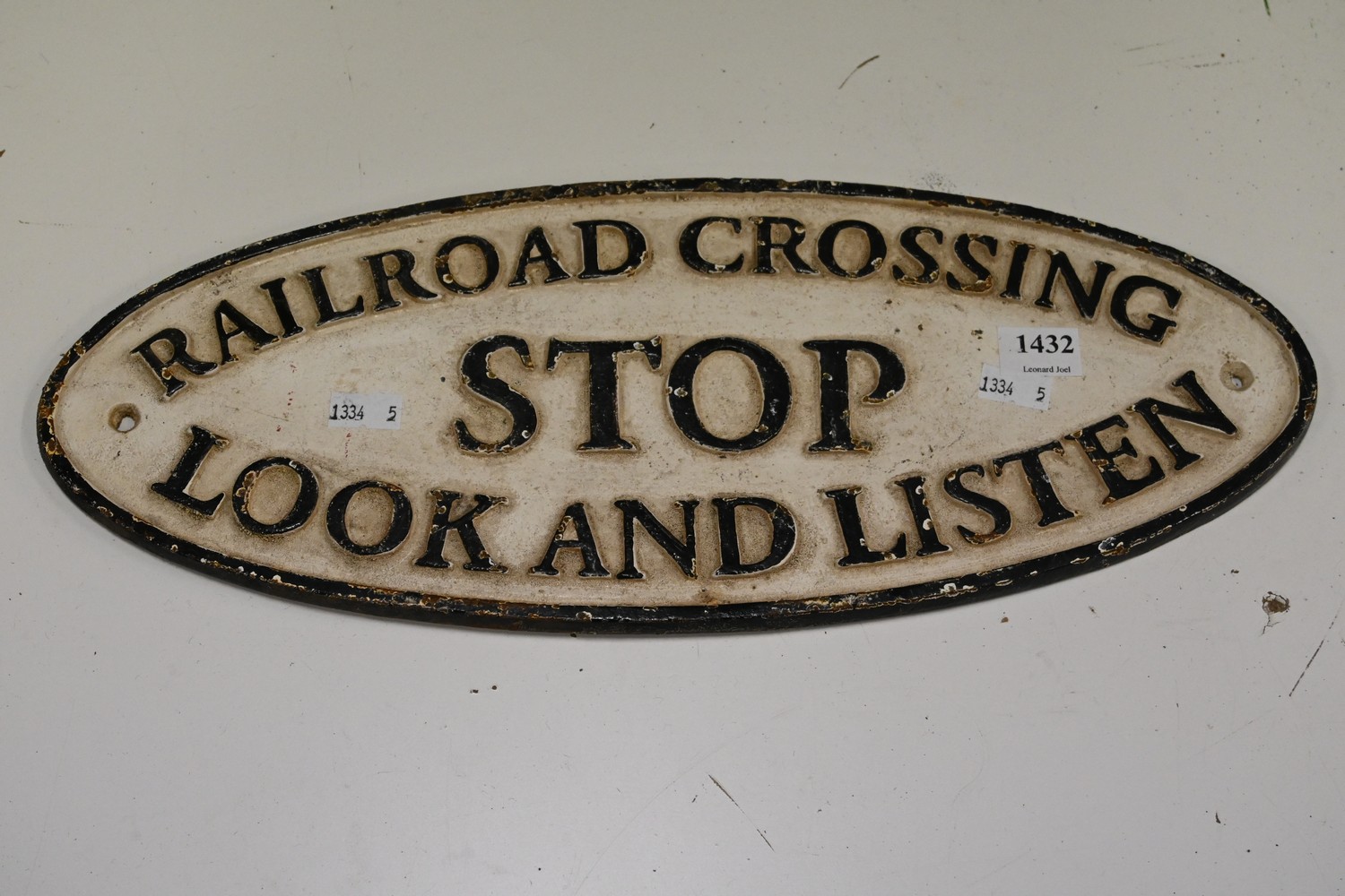 A METAL RAILWAY CROSSING SIGN (39W CM) (LEONARD JOEL DELIVERY SIZE: MEDIUM)