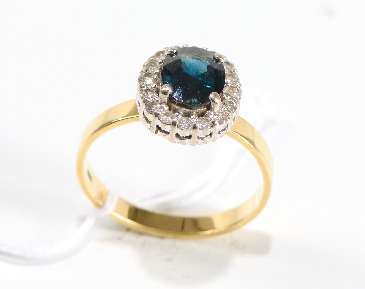 A SAPPHIRE AND DIAMOND SET RING IN 14CT GOLD, SIZE N, 4.71GMS