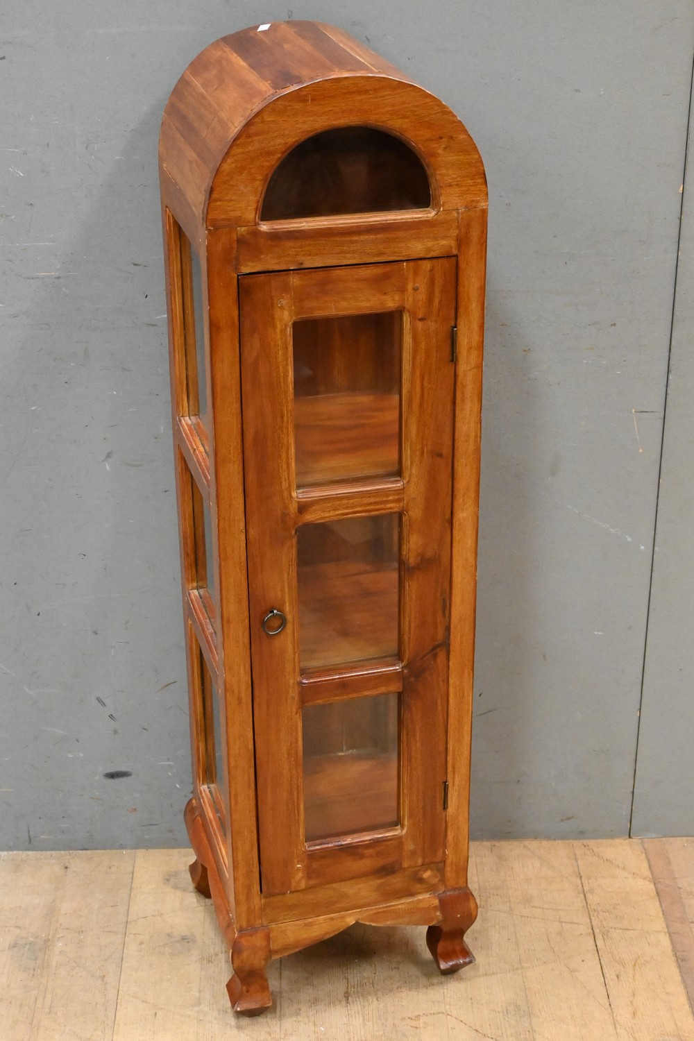 A THREE TIER TIMBER & GLASS DISPLAY CABINET ( 121H X 33W X 31D CM) (LEONARD JOEL DELIVERY SIZE: LARGE)