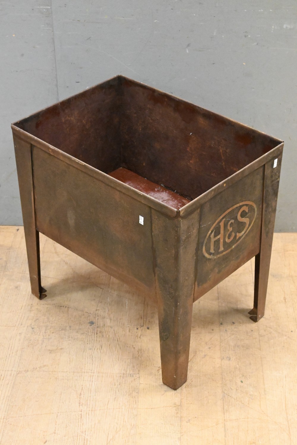 A METAL 'H&S' TIMBER STORAGE CONTAINER ( 57H X 56X 40CM) (LEONARD JOEL DELIVERY SIZE: LARGE)