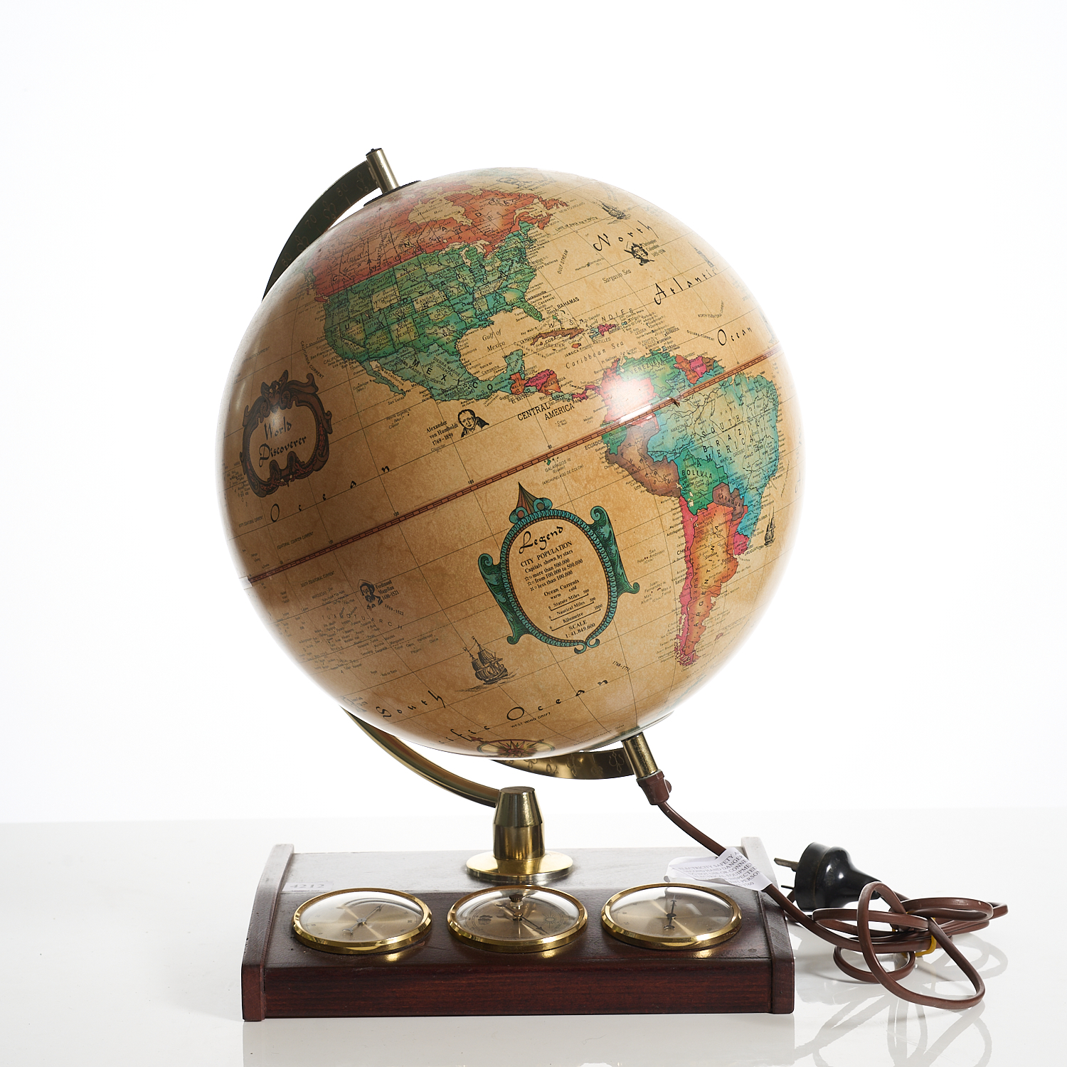 A WORLD GLOBE ON WOODEN BASE H. 44CM, LEONARD JOEL LOCAL DELIVERY SIZE: MEDIUM