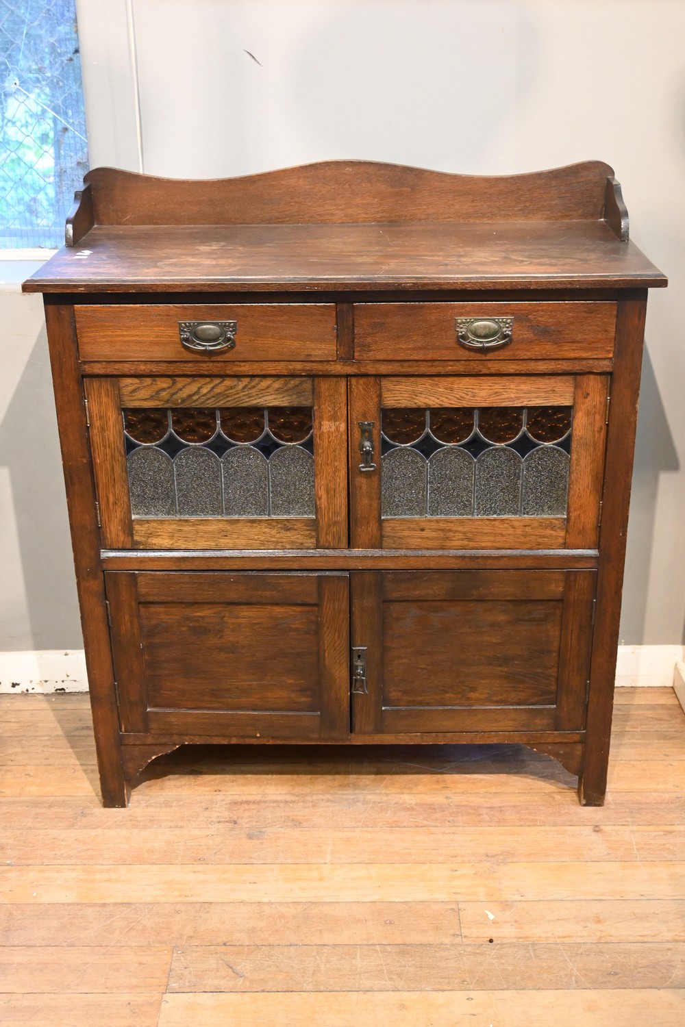 AN OAK EARLY 20TH CENTURY LEADLIGHT CABINET (A/F) (H123X W107 X D49 CM) (PLEASE NOTE THIS HEAVY ITEM MUST BE REMOVED BY CARRIERS AT THE CUSTOMER'S EXPENSE. LEONARD JOEL STAFF CANNOT ASSIST CARRYING THIS ITEM) (X-LARGE ITEM)