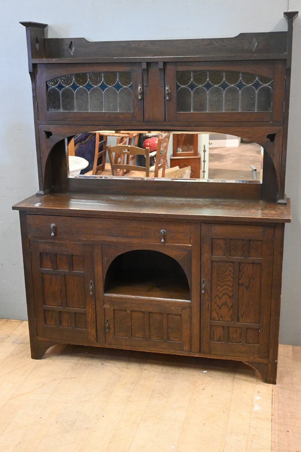 A SUBSTANTIAL OAK ARTS AND CRAFTS MIRROR BACK SIDEBOARD (196H x 156W x 48D CM) (PLEASE NOTE THIS HEAVY ITEM MUST BE REMOVED BY CARRIERS AT THE CUSTOMER'S EXPENSE. LEONARD JOEL STAFF CANNOT ASSIST CARRYING THIS ITEM) (X-LARGE ITEM)