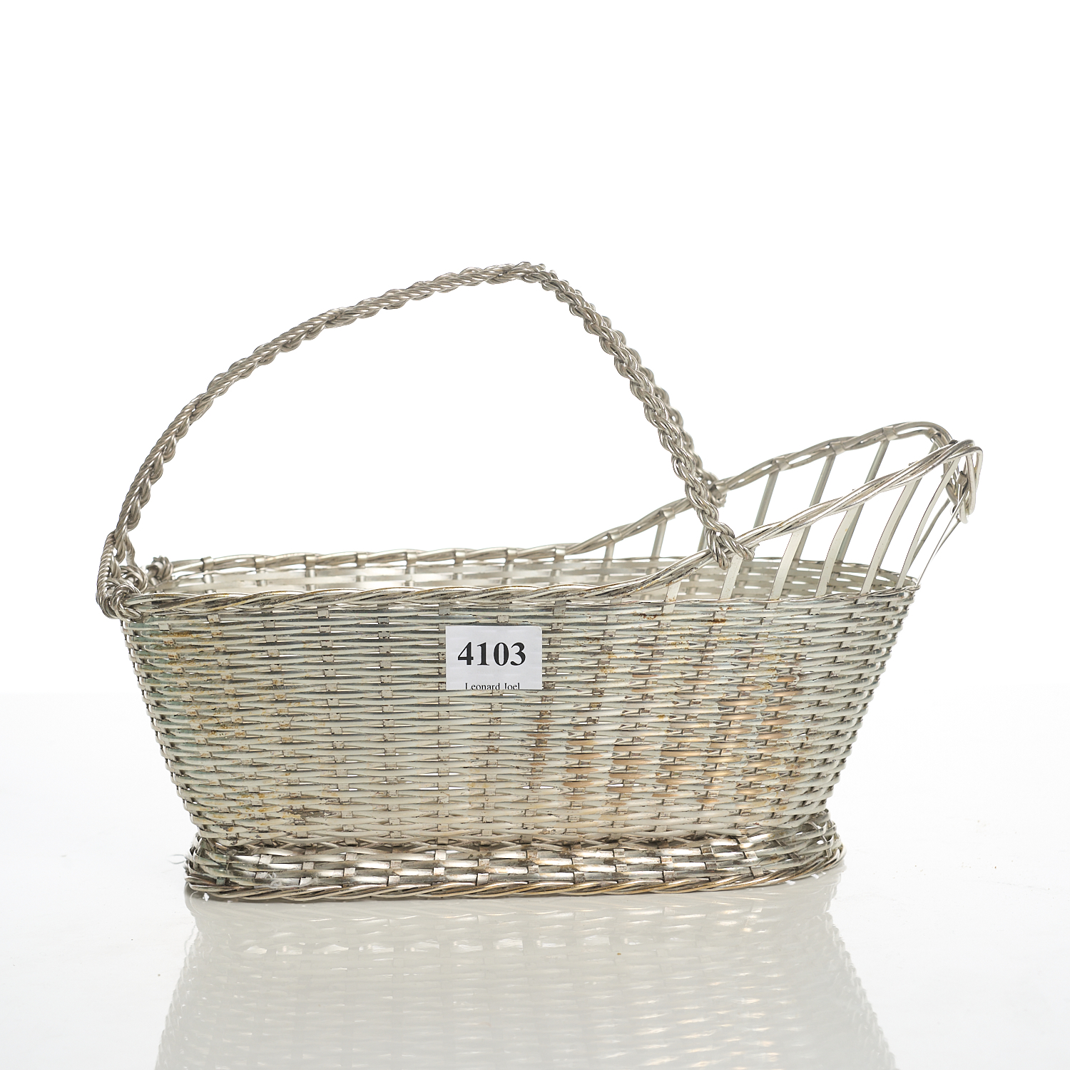 A CRISTOFLE WOVEN BASKET FORM WINE POURER W. 24CM, LEONARD JOEL LOCAL DELIVERY SIZE: SMALL