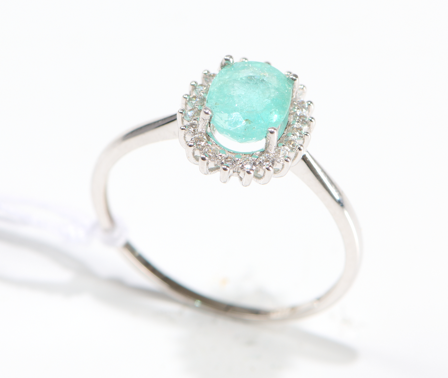 A TOURMALINE AND DIAMOND SET RING IN 18CT WHITE GOLD, RING SIZE P