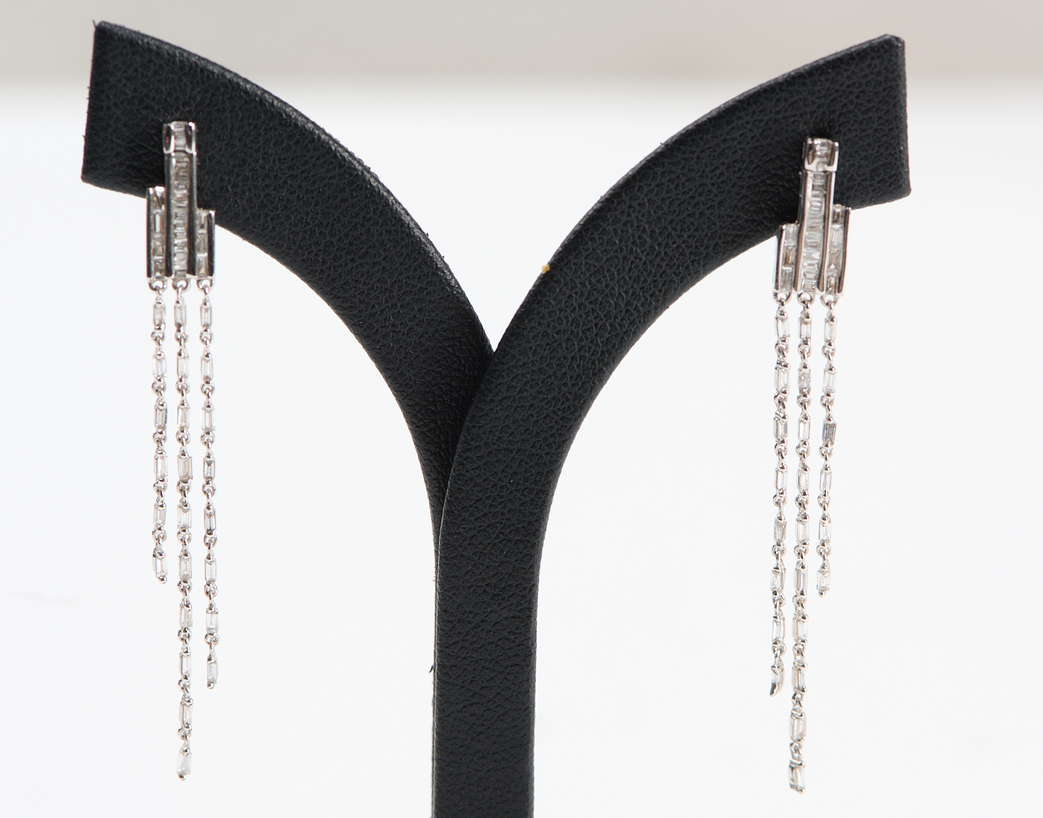 A PAIR OF DIAMOND SET DROP EARRINGS IN 18CT WHITE GOLD