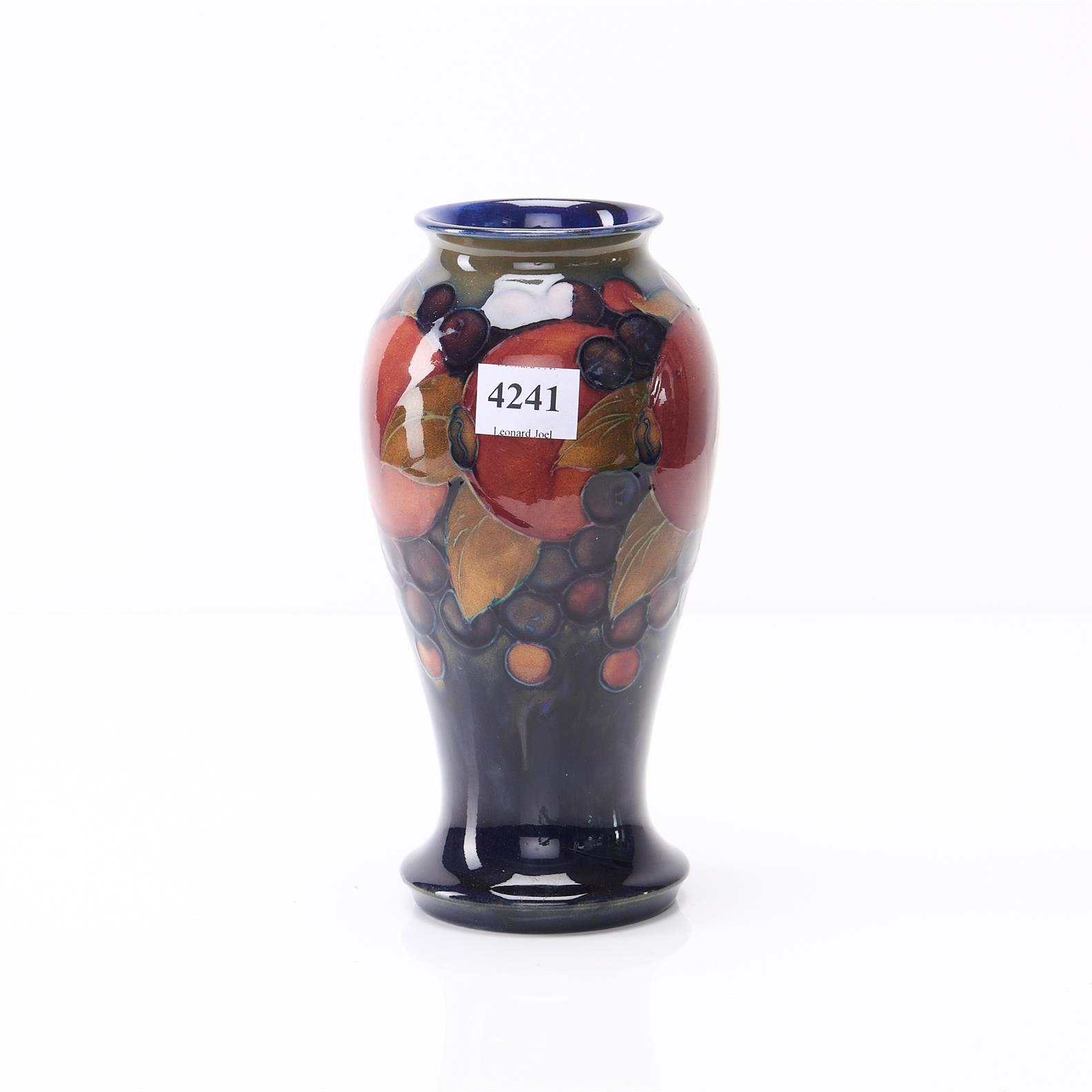 A MOORCROFT POMEGRANATE VASE, CIRCA 1920, BLUE INITIALS AND IMPRESSED MARK TO BASE, H. 18CM, LEONARD JOEL LOCAL DELIVERY SIZE: SMALL