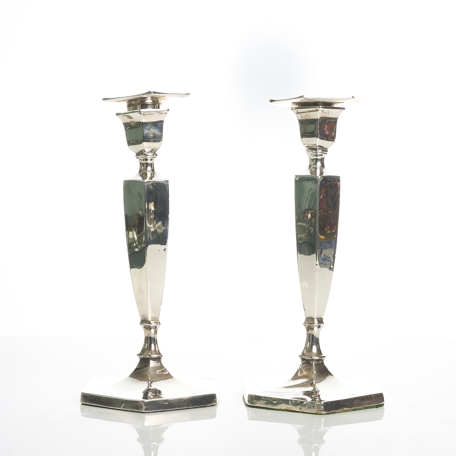 A PAIR OF BIRMINGHAM STERLING SILVER CANDLESTICKS H.21CM, LEONARD JOEL LOCAL DELIVERY SIZE: SMALL