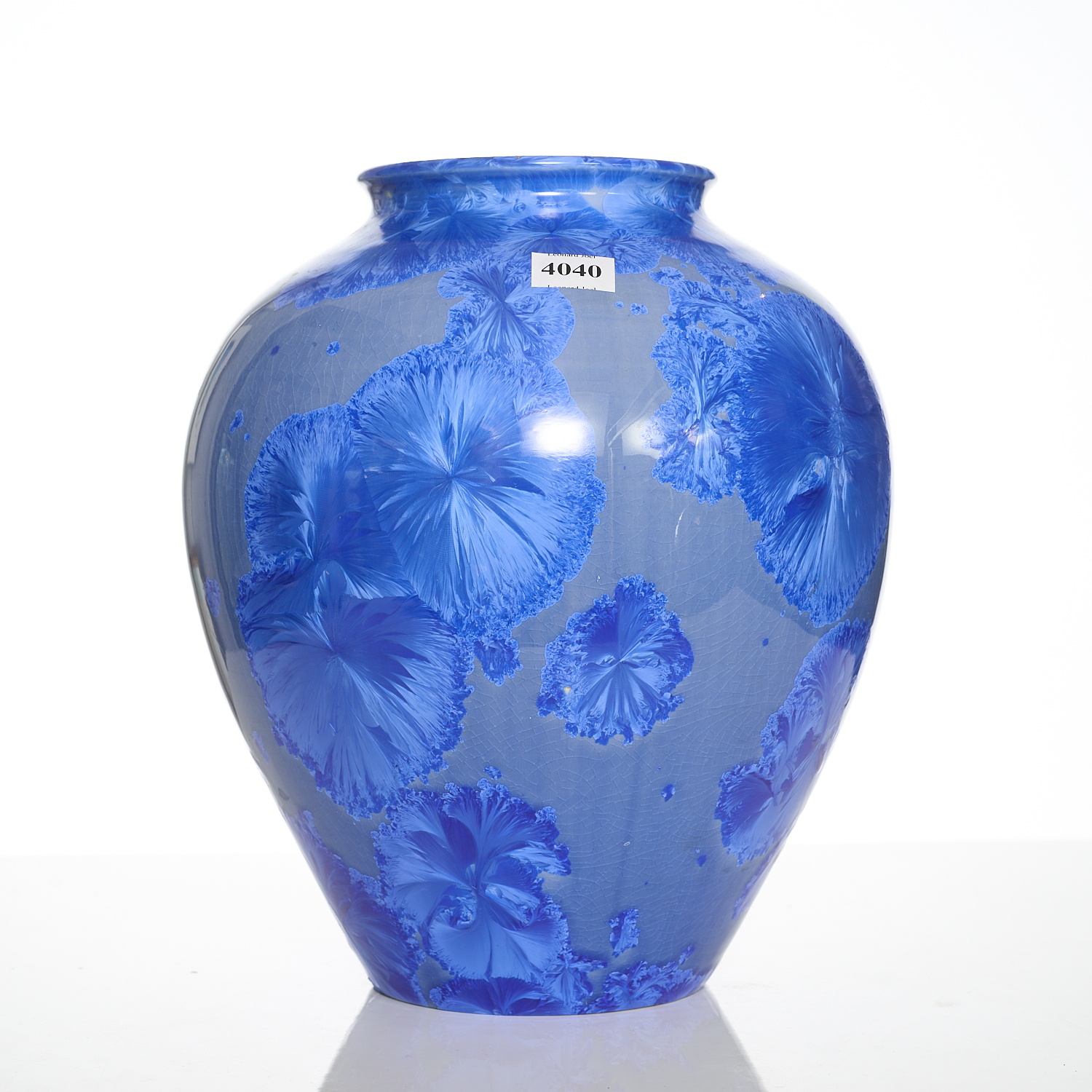A BLUE CERAMIC VASE WITH CRYSTALINE GLAZE SIGNED TO BASE H. 28CM, LEONARD JOEL LOCAL DELIVERY SIZE: MEDIUM