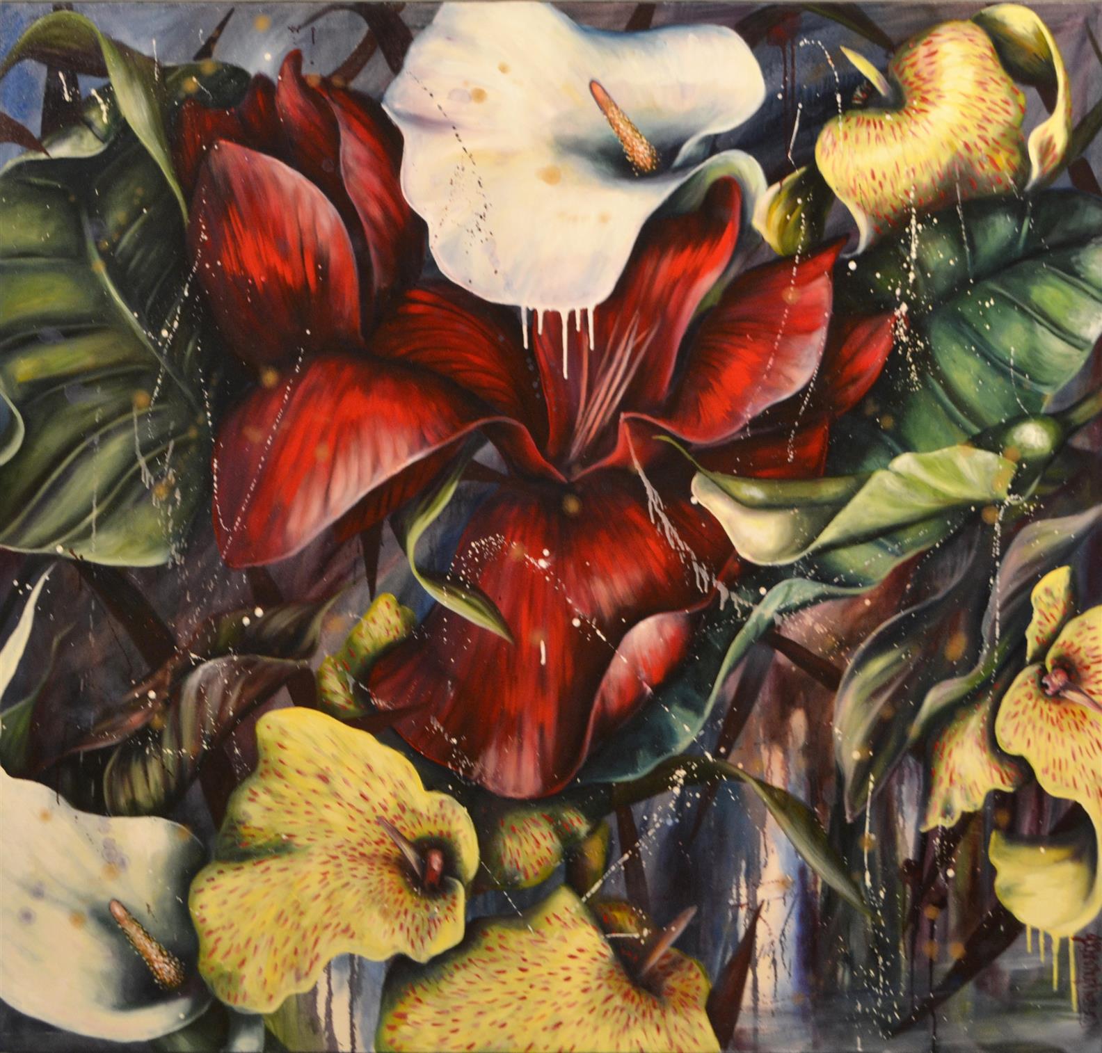 JENNIFER CHRISTOPHERSON, EARTH'S BOUNTY, OIL ON CANVAS, 152 X 139CM