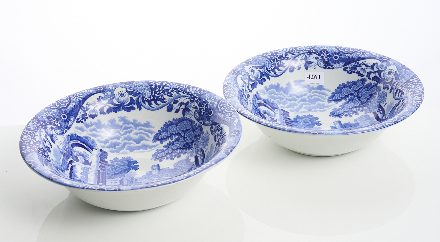 TWO COPELAND SPODE'S ITALIAN BLUE AND WHITE BOWLS DIA.24CM, LEONARD JOEL LOCAL DELIVERY SIZE: MEDIUM
